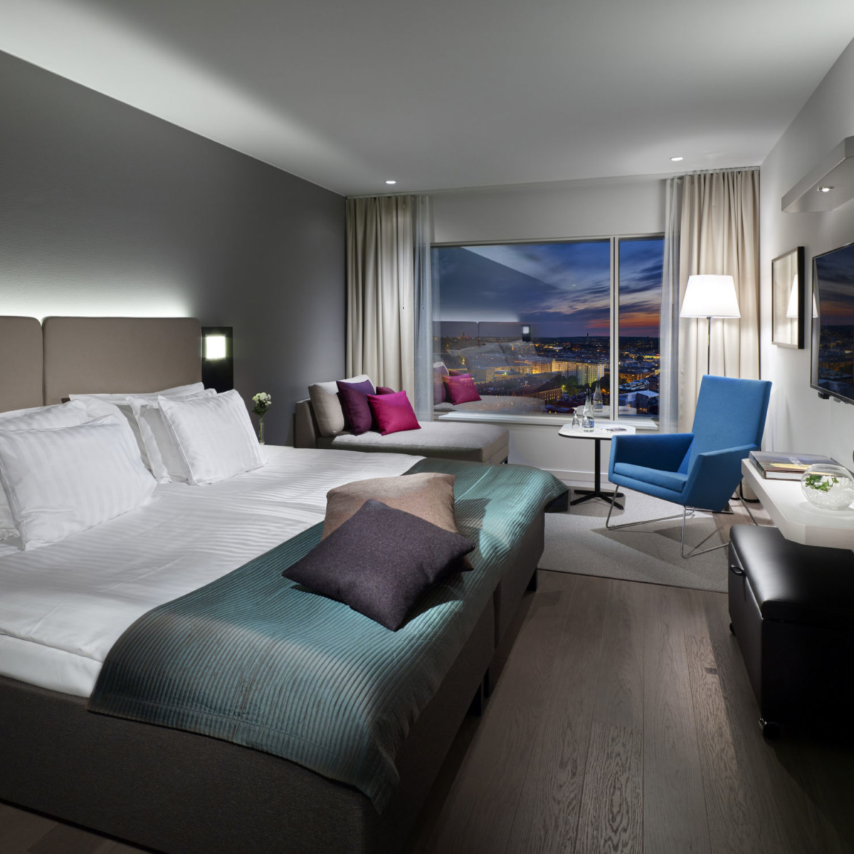 Passa på att bo på något av våra två hotell som ligger i samma byggnad som mässan. Smidigare kan det inte bli.